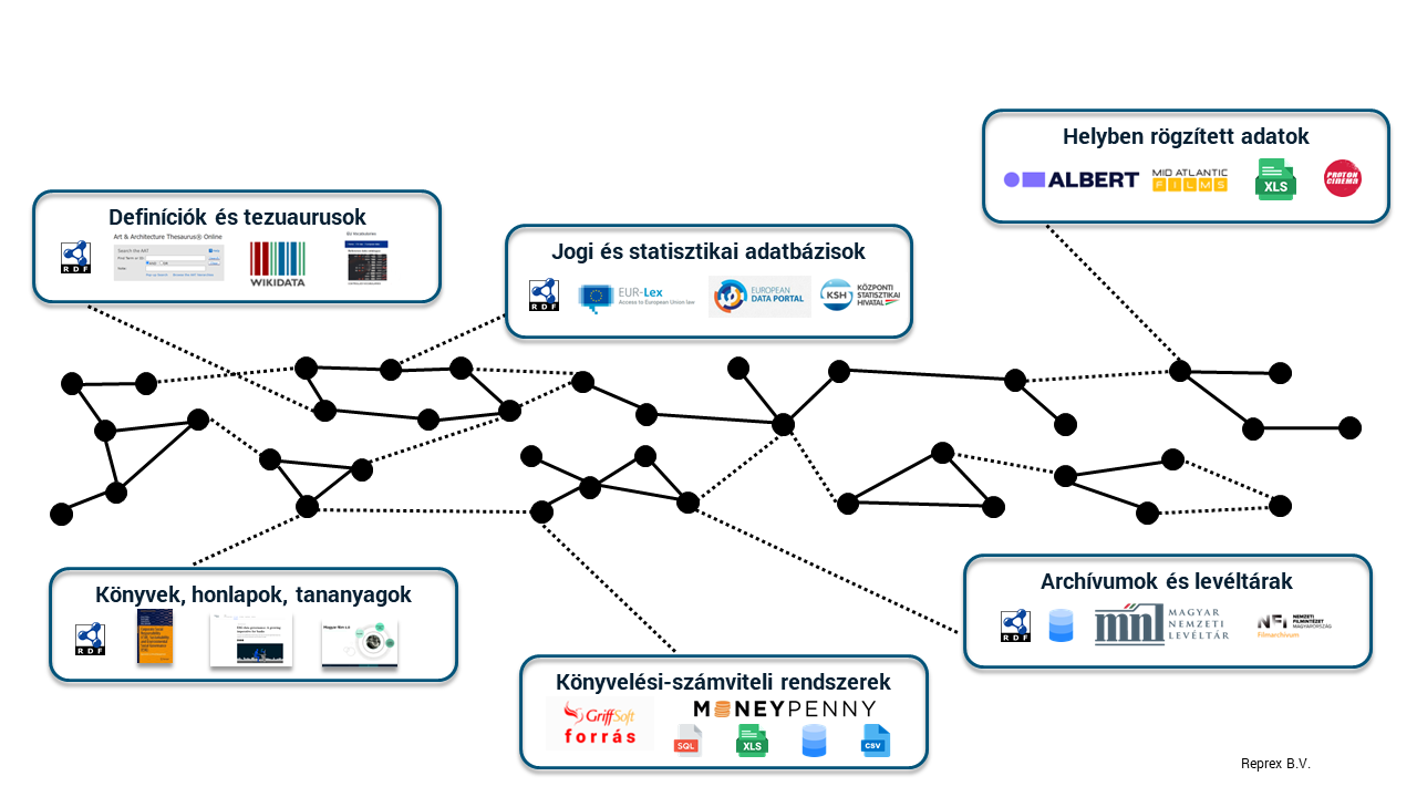 A nyilvános adatforrásokat linkeljük, a nem nyilvános adatforrásokat (pl. kapcsolódó adat az NFI, MidAtlantic vagy Proton rendszerében) úgy linkeljük, hogy az adatkapcsolat csak engedéllyel jön létre.